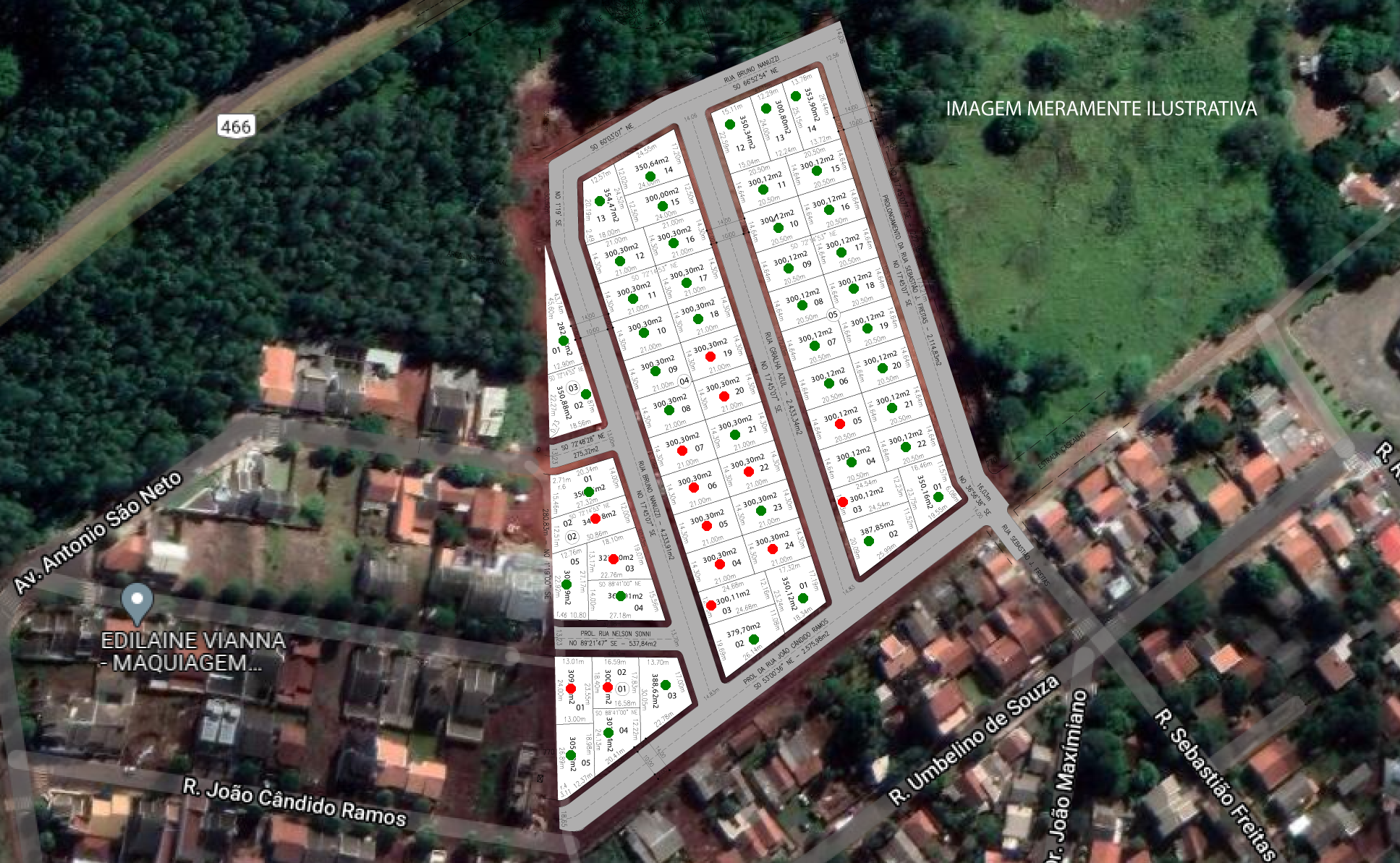 Possui um total de 58lotes de variados tamanhos que atendem as necessidades individuais de cada cliente.